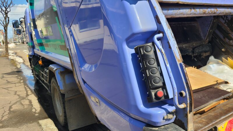 代表に聞いたところ収集車の刃で巻いてタンク内で圧縮するようですが摩擦で火が点くこともあるそうです。